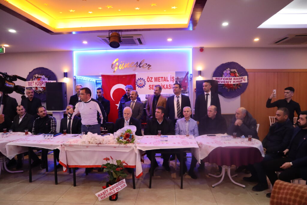 Daha sonra konuşan Öz Metal – İş Sendikası Genel Sekreteri Aydın Çetin, “Sendikayı biz çok zor şartlar altında kurduk. Ben Türk Metal Sendikası Biga Kurucu Şube Başkanıyım, Türk – İş’te de Çanakkale Bölge Başkanlığı yaptım. Çok çalışmanın bedelini de 15 tane icra ile kapının önüne koyularak ödedim” dedi. İşçilerin, Türk sanayisinin can damarı olduğunu, metal işçilerinin Türkiye’yi dünya ülkeleri arasında layık olduğu noktaya taşımak için gereken yegâne güç olduğunu kaydeden Çetin, işçilere seslenerek, “Alın terinizle bu ülkenin kalkınması için gösterdiğiniz gayret asla unutulamaz. Metal işçisinin yalnız bırakıldı, bu durumu gördüklerinde harekete geçerek yeni bir oluşum içine girdiklerini ve Öz Metal – İş Sendikası’nı kurduklarını kaydeden Çetin, “Vakit yeniden bir olmanın vaktidir. Hep birlikte adımlarımızı güçlendirmek, büyütmek, soframızı zenginleştirmek ve insan onuruna yakışır yaşam standartlarına ulaşmamız için yanınızdayız” ifadelerini kullandı. İşçilerin hak arayışından rahatsız olanların, işçileri örgütlenme hakkından uzaklaştırma çalıştığın da kaydeden Çetin, “Bugün pek çok iş kolunda çalışan işçiler, örgütlenmek istedikleri için haksız yere işlerinden uzaklaştırılmakta hatta kovulmaktadır. Ancak bu böyle devam edemez. Bu hakkı engelleyenler, adalet önünde suç işlemektedir. Bu hakkımızı kullanmaktan asla korkmamalıyız. Öz Metal – İş Sendikası, haklı mücadelelerinde her zaman işçilerimizin yanında olmaya devam edecektir” dedi.