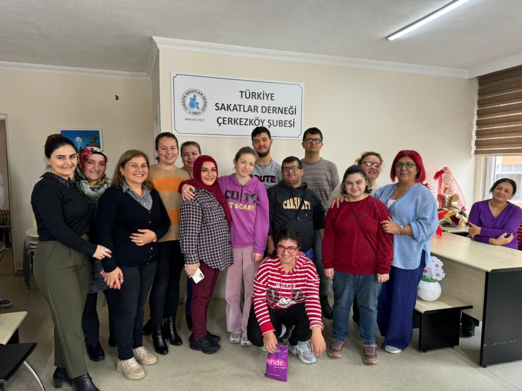 Türkiye Sakatlar Derneği Çerkezköy Şubesi tarafından 3 Aralık Dünya Engelliler Günü sebebiyle hazırlanan resim ve hediyelik eşyalar Çerkezköy İlçe Nüfus Müdürlüğü personeline takdim edildi. Sürpriz ziyaret sebebiyle TSD Çerkezköy Şube Başkanı Gülnur Kocaçınar ve dernek üyelerine teşekkür eden Çerkezköy İlçe Nüfus Müdürü Gülhan Yavuz, daha önceden alınmış hediyelerini dernek üyelerine takdim etti. Oldukça eğlenceli anların yaşandığı ziyarette kendilerini ağırlamaları sebebiyle Çerkezköy İlçe Nüfus Müdürü Gülhan Yavuz ve görevli memurlara teşekkür eden TSD Çerkezköy Şube Başkanı Gülnur Kocaınar; “Her zaman yanımızda olan, bizlere gerekli kolaylıkları sağlayan ilçe nüfus müdürlüğü memurlarımıza çok teşekkür ederiz” dedi.