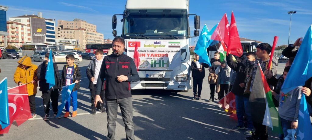 Sonrasında konuşan İHH İl Başkanı Süleyman Şahin; “Mazlumlara, garibe, başarıya ulaşan Suriyeli kardeşlerimizi tebrik ediyorum. Sağlıklı, müreffeh, aydınlık bir Suriye’nin kuruluşunda rabbimin yardımcı olmasını diliyorum. Bu aşamada bizler İHH olarak krizlerin başından beri Suriyelilerin hep yanında olduk, dünyadaki tüm mazlumların yanında olduğumuz gibi. Bir sözümüz vardı bizim; Suriye’de acılar bitene kadar onların yanında olacağımızı söylemiştik ve sözümüzde durduk. Sizlerin desteğiyle bugün Suriyeli kardeşlerimize bir TIR unu gönderiyoruz. Suriye için yaptığımız çalışmalarda bizleri yalnız bırakmadığınız için hepinize teşekkür ediyoruz. Allah nasip ederse haftaya da Çorlu’dan bir Tır unu Gazze ve Lübnan’a gönderilmek üzere yolcu edeceğiz. Bizler savaş ve kriz bölgelerine mazlumlara, afet bölgelerine, sizlerin desteğiyle yardımlarımızı ulaştırıyoruz. Dünyaya sözümüz var; dünyada iyilik, adalet gelişinceye kadar merhamet hakim oluncaya kadar, mücadelemize devam edeceğimizi sizlerin huzurunda tekrar söz veriyoruz. Bizlerden desteğinizi esirgemediğiniz için teşekkür ediyoruz. Allah hepinizden razı olsun” dedi.