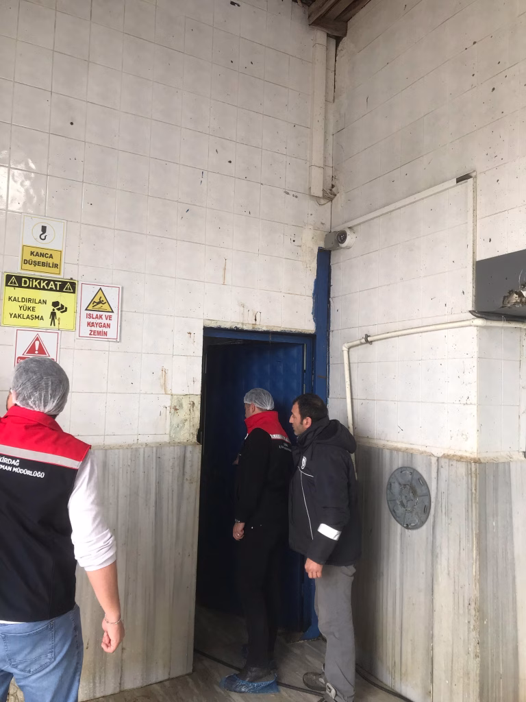 Çerkezköy İlçe Tarım ve Orman Müdürlüğü’nde görevli veteriner hekimler tarafından ilçede faaliyet gösteren mezbahalarda denetim yapıldı. Vatandaşların güvenilir, sağlıklı ve kaliteli gıdaya ulaşabilmesi için denetimlerini sürdüren Çerkezköy İlçe Tarım ve Orman Müdürlüğü ekipleri, mezbahaları tek tek kontrol etti. Denetimler kapsamında mezbahanenin teknik ve hijyenik koşulları, personel hijyeni, kasaplık hayvanların mezbahaya giriş evrakları, işletme padokları, kesim salonları, sakatat bölümleri, soğuk hava depoları, kamera sistemleri, evrakların kontrolü yapıldı. İşletme sahiplerine de kurallara uyması konusunda bilgilendirmede bulunuldu. Denetimlerin devam edeceği aktarılırken vatandaşların olumsuz bir durumla karşılaştıkları durumda ALO 174 Gıda hattına 7 gün 24 saat ulaşabilecekleri kaydedildi.