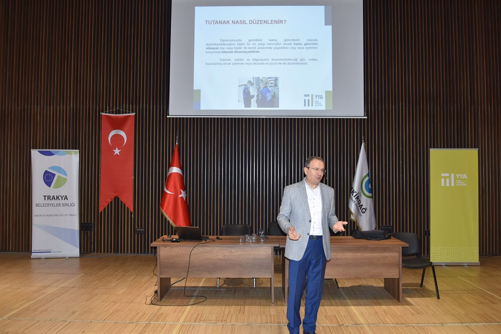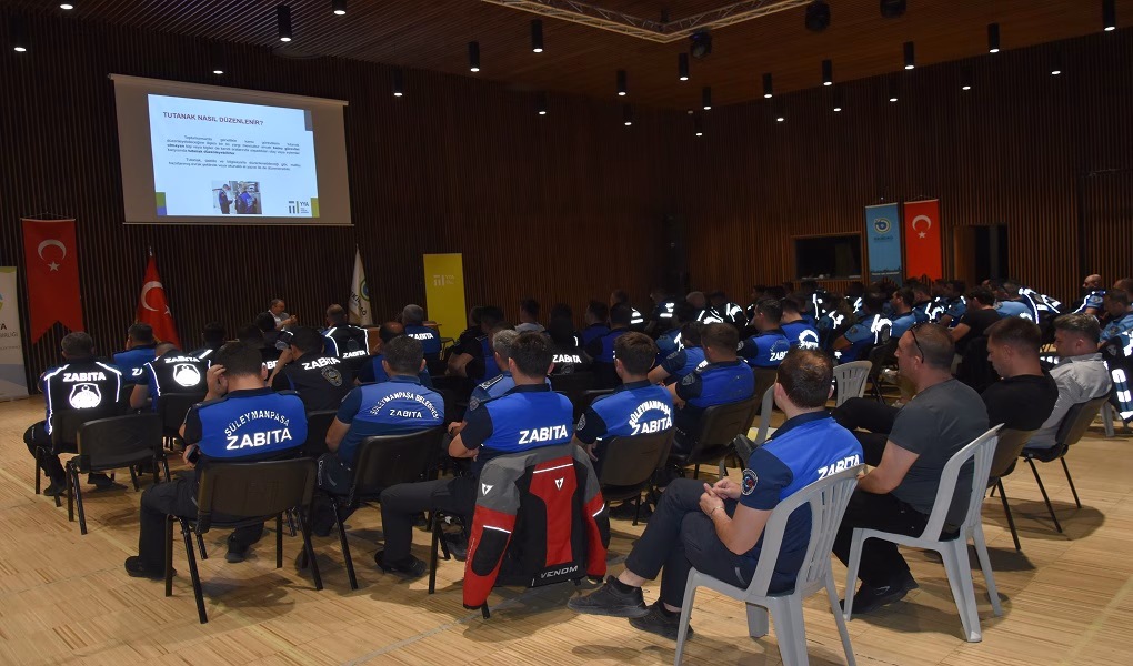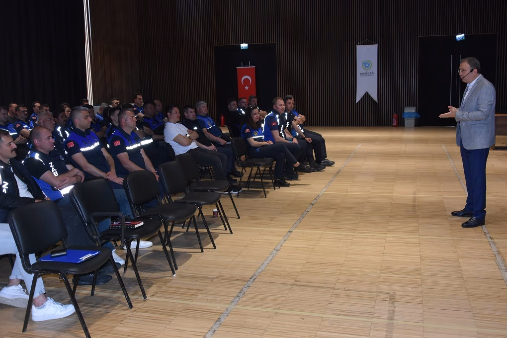 Tekirdağ Büyükşehir Belediyesi Hizmet Binası’nda bulunan Hasan Ali Yücel Salonu’nda gerçekleştirilen eğitim programının temel amacı belediye zabıtalarının görevlerini yerine getirirken yerinde ve hızlı çözüm üretmelerine katkı sağlamak, verilen hizmetlerin kalitesinin artırılmasına ilişkin mevzuat bilgi ve becerilerini geliştirebilme yeteneği kazandırmaktır. Tekirdağ dışında çevre illerin belediyelerinde görev yapan zabıta memurlarının da katıldığı eğitimde, Eğitmen Sadettin Özyazıcı tarafından, 1608 Sayılı Kanun ve Kabahatler Kanunu Uygulamaları ile İşyeri Mevzuatı ve Tüketici Denetimleri konularında sunum eşliğinde ayrıntılı bilgiler verildi ve Zabıta Memurlarının soruları cevaplandırıldı. Zabıta birimleri, 5393 sayılı Belediye Kanunu’nun 48’inci maddesinde belediye kurulurken belediye bünyesinde olması gereken birimler arasında yer almaktadır. İnşaattan imara, sağlıktan çevreye, hayvan sağlığından gıda satış yerleri kontrolü gibi toplumsal yaşamın her alanında görev alan belediye zabıtalarının görev, yetki ve sorumlulukları mevzuata bağlı olup Belediye Zabıta Yönetmeliği ile tarif edilmektedir. Bu mevzuatın takibi ve güncel tutulması anlamında, belediye zabıtalarına yönelik olarak belirli aralıklarla eğitimler düzenlenerek söz konusu konularda bilgi ve becerilerinin geliştirilmesine katkı sağlanması amaçlanmaktadır.