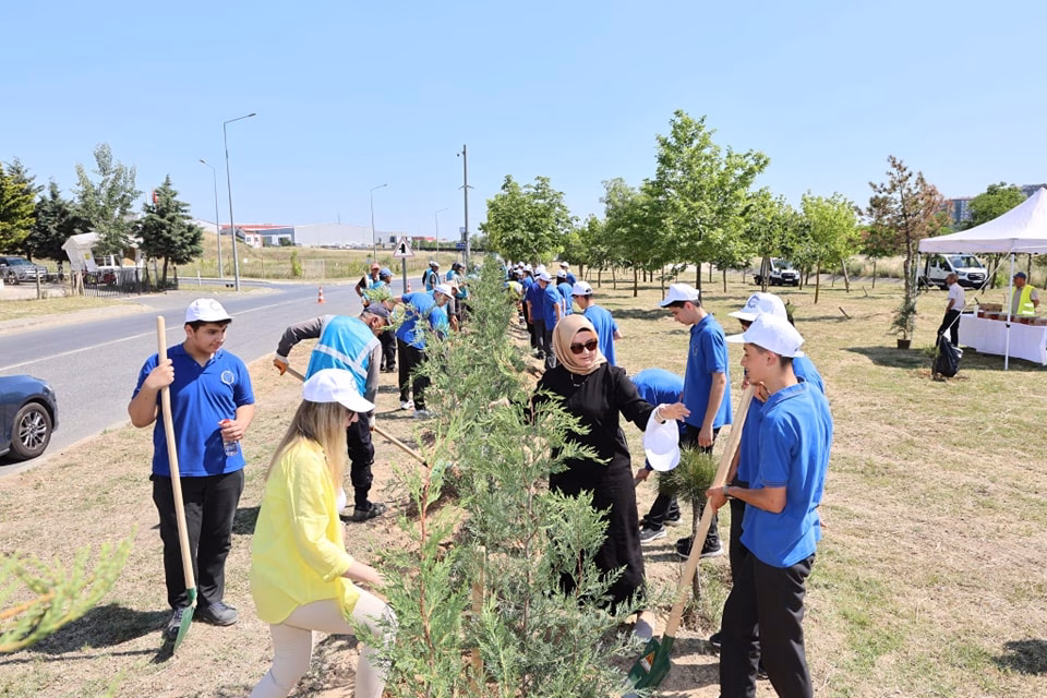 Çerkezköy Organize Sanayi Bölgesi (ÇOSB), 5 Haziran Dünya Çevre Günü’nü Özel ÇOSB Mesleki ve Teknik Anadolu Lisesi öğrenci ve öğretmenleriyle birlikte coşkuyla kutladı! ÇOSB Bölge Müdürlüğü İdari İşler ve Peyzaj Şefliği tarafından özenle yetiştirilen 350 fidan, etkinliğe katılan herkesle birlikte toprakla buluştu.