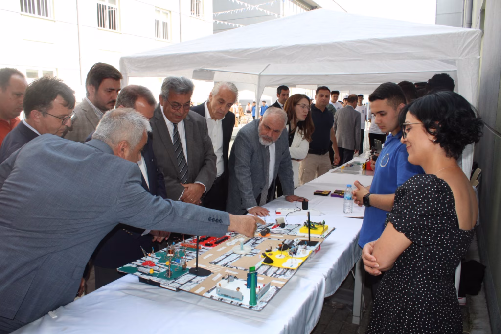 Açılış kurdelesinin kesilmesinin ardından davetliler okul bahçesindeki bilim şenliğinde sergilenen eserleri tek tek gezerek projeler hakkında bilgi aldı. Bilimsel ve robotik kodlama projeleri başta olmak üzere öğrenciler tarafından hazırlanan çok sayıda proje büyük beğeni ile incelendi. 150’ye yakın resmin sergilendiği, 40’a yakın projenin yer aldığı ‘Bilim Sergisi’ gün boyunca açık kaldı.