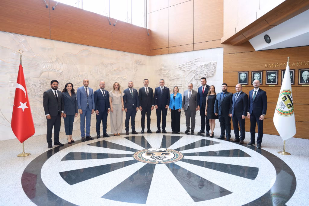 Anıtkabir ziyaretinin ardından Tekirdağ Barosu heyeti, Türkiye Barolar Birliği’ni (TBB) ziyaret etti. TBB Başkanı Av. R. Erinç Sağkan, TBB Başkan Yardımcısı Av. Bahar Gültekin Candemir ve TBB Genel Sekreteri Av. Erdem Ekmekçi ile bir araya gelen heyet, mesleki sorunlar, hukukun üstünlüğü ve baroların güçlendirilmesine yönelik görüş alışverişinde bulundu. TBB ziyareti kapsamında yapılan görüşmelerde Tekirdağ Barosu’nun çalışmaları hakkında bilgi veren Gürcün, avukatlık mesleğinin karşılaştığı sorunların çözümüne yönelik önerilerini dile getirdi. Ayrıca, barolar arası iş birliğini artıracak projelere dair fikir alışverişinde bulunuldu. TBB Başkanı Sağkan ise Tekirdağ Barosunun ülkemizdeki adalet ve hukuk mücadelesindeki katkısından bahsederek ziyaretten duyduğu memnuniyeti dile getirdi.