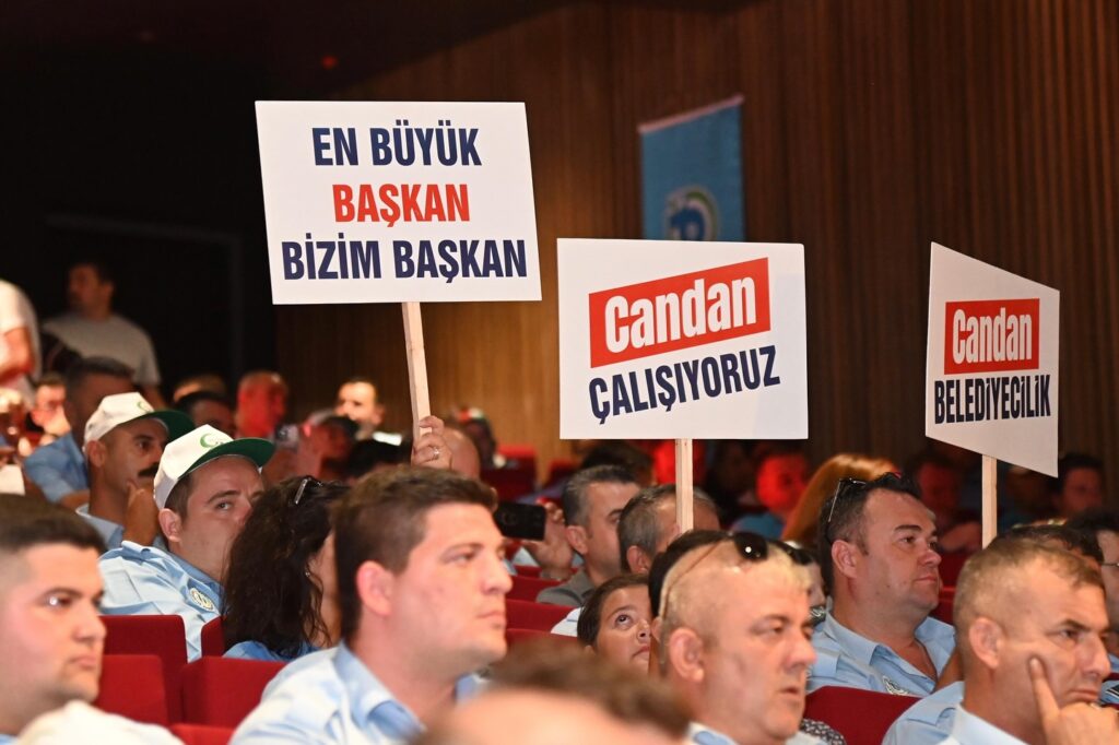 Tekirdağ Büyükşehir Belediye Başkanı Dr. Candan Yüceer, törende yaptığı konuşmada emeğin önemine vurgu yaparak, “Bugünkü buluşma benim için çok kıymetli. Çünkü biliyorum ki emek en yüce değerdir, ondan daha yüce bir şey yoktur. Hepimiz emeğimizi seviyoruz, emeğimizle yüceliyoruz. Dolayısıyla bugün burada emeğin hakkını teslim etmek, emekçinin hakkını teslim etmek için bulunuyoruz. Göreve geldiğim günden beri, ‘Eşit işe eşit ücret’ ve ‘Emekçiyi enflasyona ezdirmeyeceğiz’ dedik. Bugün de sizleri enflasyona ezdirmemek için buradayız. Belediyemize, şehrimize ve hemşehrilerimize sunduğunuz tüm emekleriniz için teşekkür ediyorum” dedi.