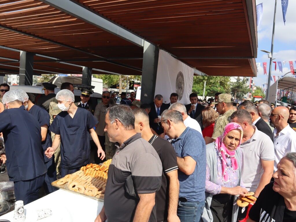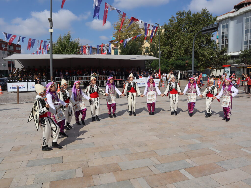 Çerkezköy Halk Eğitimi Merkezi Halk Oyunları ekibinin Tekirdağ yöresine ait halk oyunları gösterisinin ardından program geçit töreni ile sona erdi. Geçit töreninde Mehmetçiğin ve Gazilerimizin geçişi vatandaşlar tarafından ilgiyle izlendi. Törende Çerkezköy 3.Zırhlı Tugay Komutanlığı ikram çadırı kurarak vatandaşlara simit, poğaça ve açma ile soğuk ve sıcak içecek ikramında bulundu.