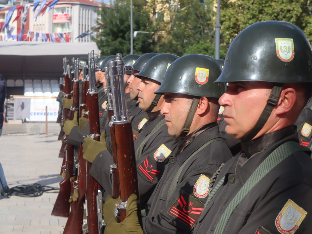 Çerkezköy Kaymakamı Nazmi Günlü, 3. Zırhlı Tugay Komutanı Tank Kurmay Albay Erkan Bulut ve Çerkezköy Belediye Başkanı Vahap Akay’ın Atatürk Anıtı’na çelenk sunmasının ardından Saygı Duruşu’nda bulunuldu ve İstiklal Marşımız okundu. Sonrasında tebrikat töreni gerçekleştirildi.