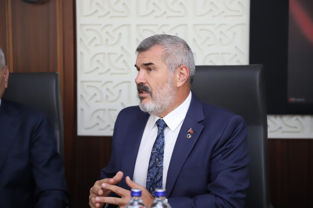 Toplantıda açılış konuşmasını gerçekleştiren ve 9. Çerkezköy Endüstriyel Fuarı hakkında bilgilendirmelerde bulunan Başkan Ahmet Çetin, “Öncelikle Çerkezköy Ticaret ve Sanayi Odası olarak sizleri Odamızda ağırlamaktan mutluluk duyuyoruz. 10 Eylül’de 9. Çerkezköy Endüstriyel Fuarımızın açılışını gerçekleştireceğiz. Bölgemiz ticaretinin gelişime katkı sağlayan ve bu sene daha geniş kitlelere ulaşan fuarımızda Saha İstanbul ile işbirliği içerisinde Aselsan, Aspilsan, Asfat, Baykar, MKE, Roketsan, STM ve Tusaş gibi savunma sanayimizin lokomotif firmaları B2B alanımızda ziyaretçi ve katılımcı firmalarımız ile görüşmeler gerçekleştirecek. Her sektörde öncü firmaları bünyesinde bulundurun sanayimizin, savunma sanayi alanında da kümelenmesi yeni ortaklıklara, yeni yatırımlara kapı açması adına önemli ve stratejik bir hamle olacak. TOBB Başkanımız Sayın M. Rifat Hisarcıklıoğlu’nun da fuarımıza katılacak olması, fuarımızın ulaştığı seviyeyi bir kez daha ispatlamıştır. Bölgemizde kurmayı hedeflediğimiz güçlü tedarik zinciri açısından da kıymetli bir çalışma olacak. Ticaret, ihracat önceliğimiz ama eğitim vazgeçilmez. Bölgemizin eğitim ihtiyaçlarına destek olması adına Odamızın da destekleri ile Kapaklı ilçemize kazandırılan 16 derslikli TOBB ortaokulumuzun açılışını da 11 Eylül’de gerçekleştireceğiz. 10 Eylül ile başlayarak hem ticarete, ihracata ve eğitime hız kazandıracak bir dönem geçireceğiz. Fuarımızın herkes için hayırlı, bol ve bereketli geçmesini diliyorum” İfadelerini kullandı.