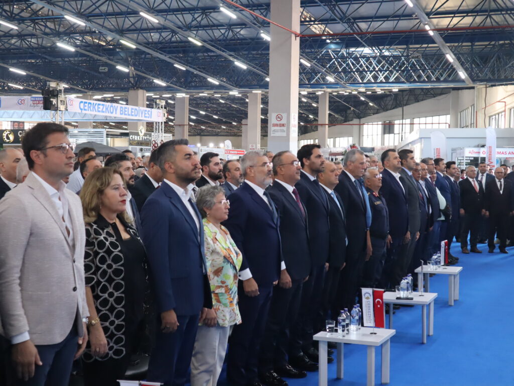 Program saygı duruşunda bulunulması ve İstiklal Marşımızın okunması ile başladı. Programın açılış konuşmasını gerçekleştiren Çerkezköy Ticaret ve Sanayi Odası Başkanı Ahmet Çetin, fuarın bölge sınırlarını aştığını belirterek; “Fuarımız bölge sınırlarını aşarak yurt dışından yatırımcı ve ziyaretçileri ağırlamaktadır. Birazdan işbirliği protokolü imzalayacağımız Saha İstanbul’un öncülüğünde ülkemizin gözbebeği savunma sanayi firmalarımız fuarımızda aramızdadır. Bu iş birlikleri Çerkezköy’ün sadece sanayisi değil, milli savunma ekosisteminin de güçlü bir paydaşı haline geldiğini göstermektedir. Bölgemiz sadece yerli sanayicilerimiz için değil, yabancı yatırımcıların da ilgisini çekmektedir. Bugün itibariyle 90’ın üzerinde çok uluslu bir üretim altyapısı, lojistik ve birçok avantajları nedeniyle yatırım için bölgemizi tercih etmiştir. Bu tablo, bölgemizi üreten ölçekte cazibe merkezi haline geldiğini ortaya koymaktadır. Türkiye İhracatçılar Meclisi’nin ilk bin listesinde 32 tane sanayicimizin olması bizi gururlandırmaktadır ve hepsi şu anda aramızdadır” dedi.