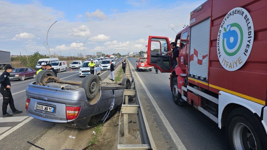 Kaza, Çerkezköy-Çorlu yolu üzerinde meydana geldi. Çorlu istikametine seyir halinde olan H.İ. idaresindeki 34 BK 9099 plakalı otomobil, sürücüsünün direksiyon hakimiyetini kaybetmesi sonucu kontrolden çıkarak takla attı. Araç ters dönerken, sürücü H.İ. yaralandı. Kazayı gören çevredeki vatandaşlar hemen yardıma koşarak durumu 112 Acil Çağrı Merkezi’ne bildirdi. İhbar üzerine olay yerine polis, itfaiye ve sağlık ekipleri sevk edildi. Yaralı sürücü, ilk müdahalenin ardından ambulansla Çerkezköy Devlet Hastanesi’ne kaldırılarak tedavi altına alındı. Sürücünün sağlık durumunun iyi olduğu öğrenilirken, polis kazayla ilgili inceleme başlattı.