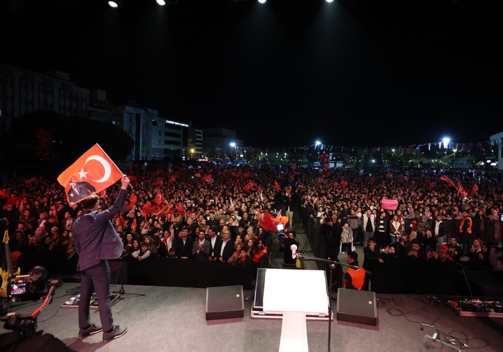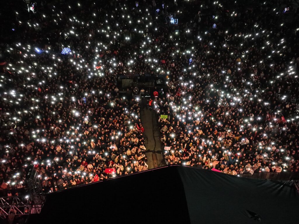 Ellerinde bayraklar ve meşaleler ile Kapalı Pazar Yeri önüne kadar marşlar söyleyerek yürüyen binlerce Çerkezköylü, Cumhuriyetimizin 102. Yıl coşkusuna ortak olurken, kortejin konser alanına varmasının ardından saygı duruşu yapıldı ve İstiklal Marşımız hep bir ağızdan okundu. Cumhuriyetimizin 102. Yılı anısına hazırlanan videoların izlenmesinin ardından sahneye çıkan Belediye Başkanı Vahap Akay sözlerine “Karanlığın en derin anında yanan bir ışık Cumhuriyet” diyerek başladı.