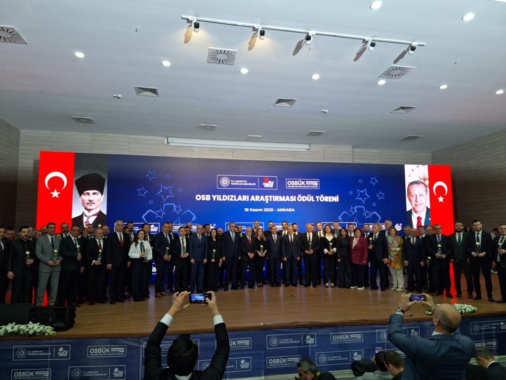 Çerkezköy Organize Sanayi Bölgesi (ÇOSB), Organize Sanayi Bölgeleri Üst Kuruluşu (OSBÜK) tarafından gerçekleştirilen 2025 OSB Yıldızları Araştırması’nda ödüle layık görüldü. Bu yıl beşincisi düzenlenen ödül töreni, Sanayi ve Teknoloji Bakanı Mehmet Kacır’ın katılımıyla yapıldı.