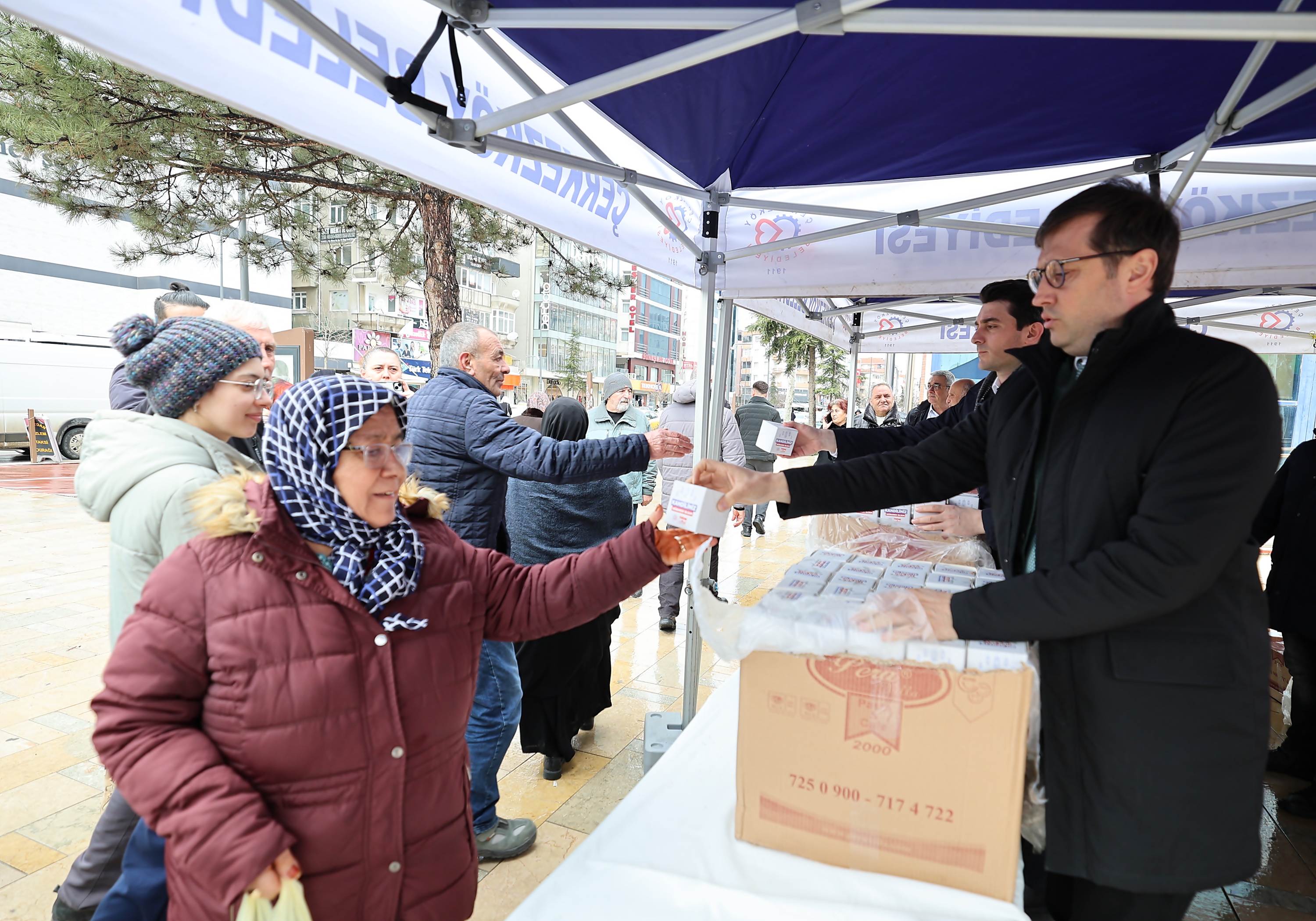 Çerkezköy Belediyesi tarafından Berat Kandili dolayısı ile Cumhuriyet Meydanı’nda kandil simidi dağıtıldı.