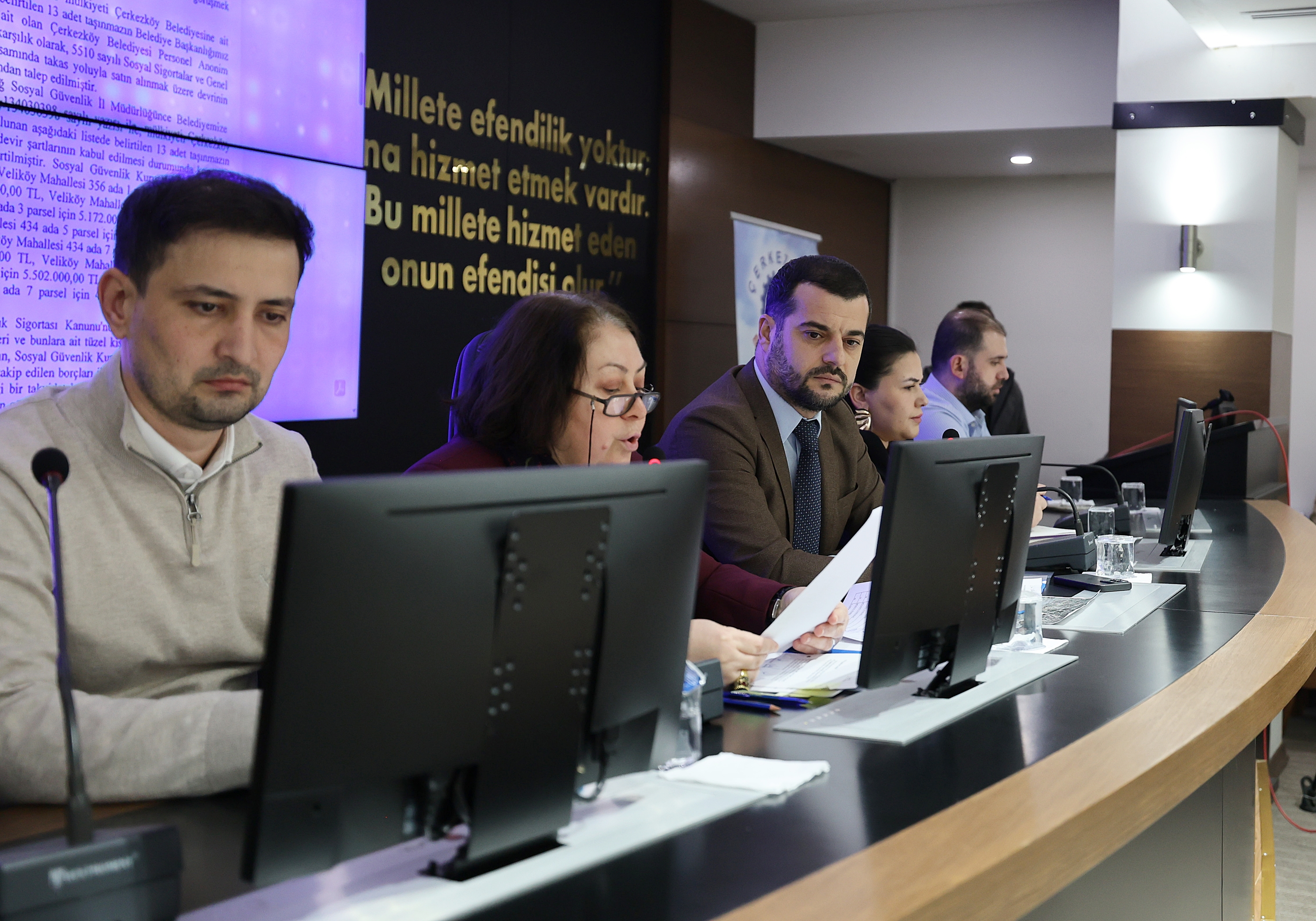 Açılış ve yoklamanın ardından başlayan toplantıda ilk olarak Emlak ve İstimlak Müdürlüğü’nün devir konulu yazısı ele alındı. Buna göre, Çerkezköy Belediyesi’ne ait 13 adet taşınmazın, belediye iştiraki olan Personel Anonim Şirketi’nin sosyal güvenlik borçlarına karşılık Sosyal Güvenlik Kurumu Başkanlığı’na devredilmesi Plan ve Bütçe Komisyonu görüşü doğrultusunda oy birliğiyle kabul edildi.