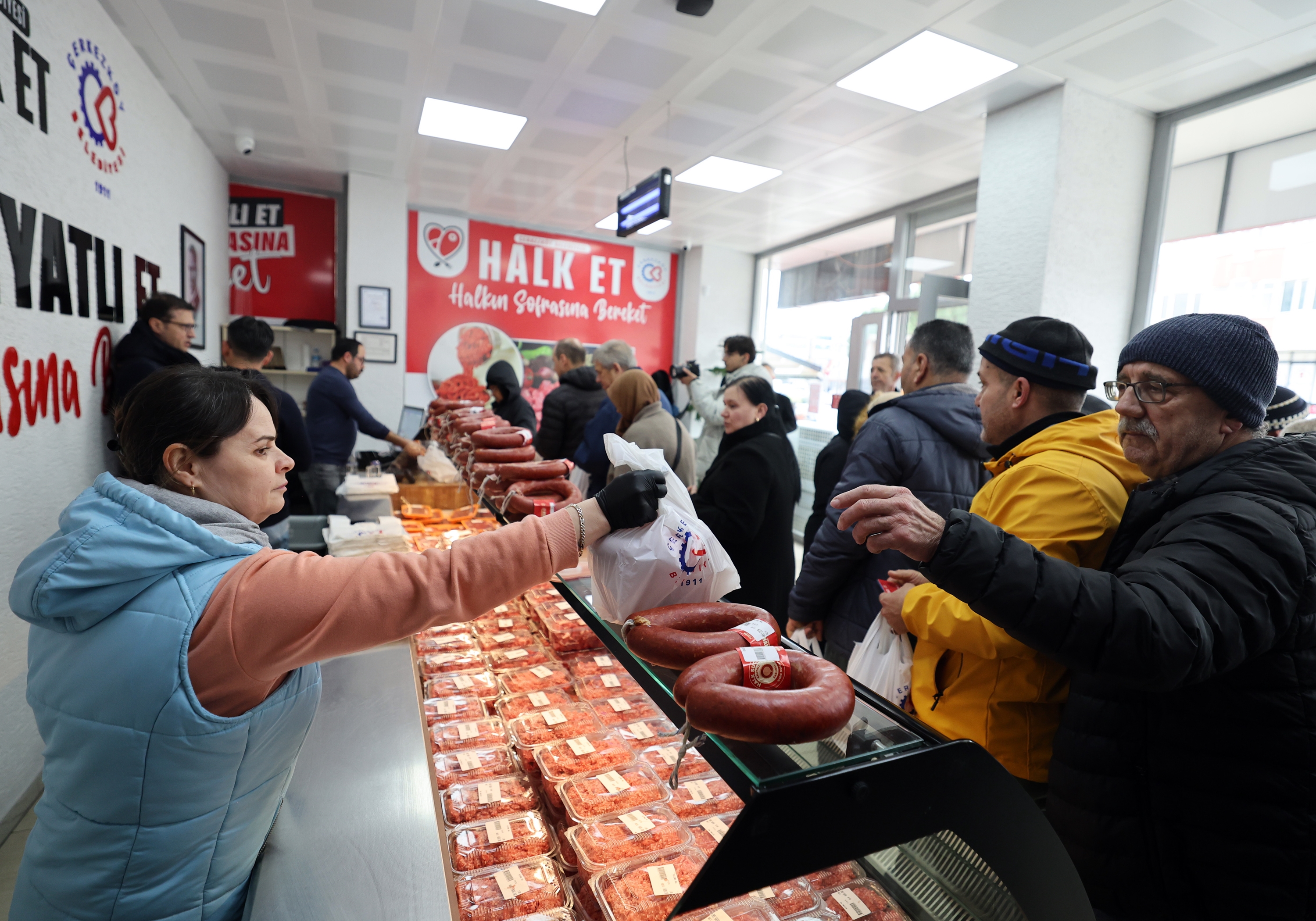 Halk Et projesinin Çerkezköy’de yaklaşık 1 yıl önce hayata geçirildiğini anımsatan Belediye Başkanı Vahap Akay, “Herkese hayırlı günler. Şu anda kent merkezimizdeki Halk Et şubemizin önündeyiz. Yaklaşık bir seneyi tamamladık. Geçen yıl yine Ramazan ayı arifesinde Halk Et şubelerimizin açılışını gerçekleştirmiştik. 1 yıldır hizmetteyiz. Bu 1 yıllık süre içerisinde yaklaşık 130 ton kilogram et satışı gerçekleşti. Bu da Kızılpınar ve Çerkezköy şubelerimizde yaklaşık 700 kilogram et satışı yaptığımız anlamına geliyor” dedi. “Hedefimiz ihtiyacını yeterince karşılamayan vatandaşlarımıza kaliteli eti en uygun fiyata ve en sağlıklı şekilde ulaştırmak” diyerek konuşmasını sürdüren Başkanı Vahap Akay, “Geride bıraktığımız 1 yıllık süre içinde vatandaşlarımızın yoğun ilgisiyle karşı karşıyayız. Halk Et projesini hayata geçirdiğimiz günden beri her gün şubelerimizin önünde uzun kuyruklarla karşı karşıyayız. Elimizden geldiğince daha çok vatandaşımıza ulaşmak, daha çok insanımızı bu hizmetten faydalandırmak istiyoruz. Umut ediyorum Ramazan ayında da bu yoğunluğu Halk Et’te yaşayacağız. Ucuz, sağlıklı, kaliteli hizmeti Çerkezköy’de evimizde sunmaya devam edeceğiz” ifadelerini kullandı.