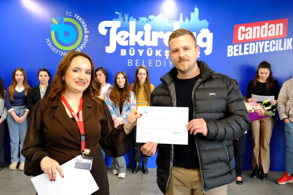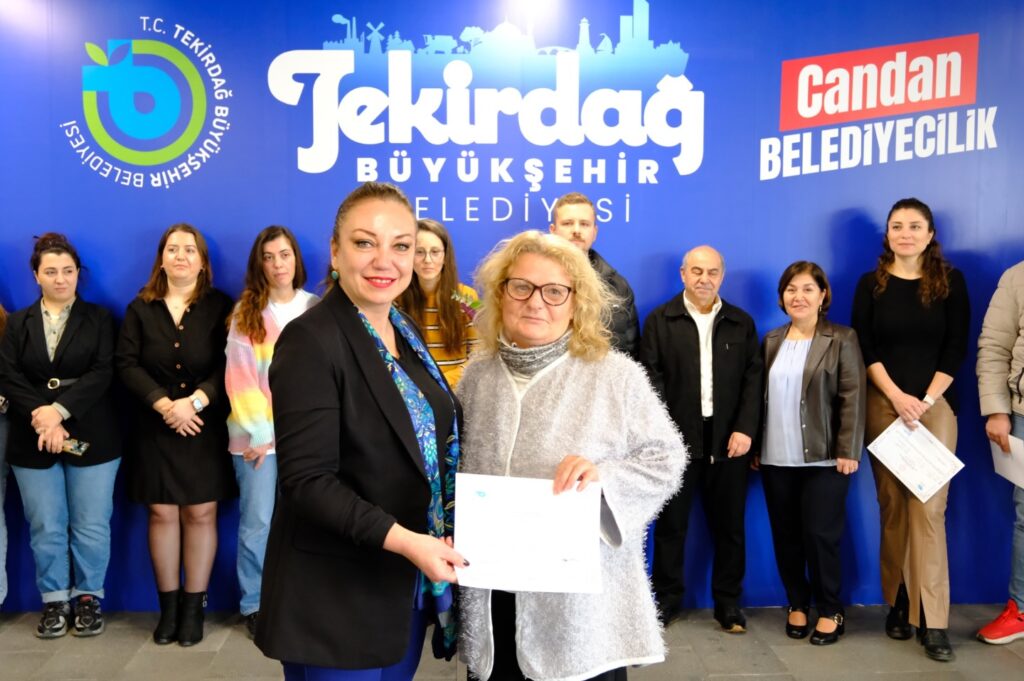 Büyükşehir Belediyesi Ana Hizmet Binası’nda düzenlenen sertifika törenine; Tekirdağ Büyükşehir Belediye Başkanı Dr. Candan Yüceer, Tekirdağ İl Millî Eğitim Müdürlüğü Hayat Boyu Öğrenme Şube Müdürü Hasan Hüseyin Elverişli ve Süleymanpaşa Halk Eğitim Merkezi Müdürü Erdem Zeray katıldı.