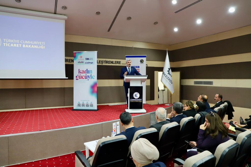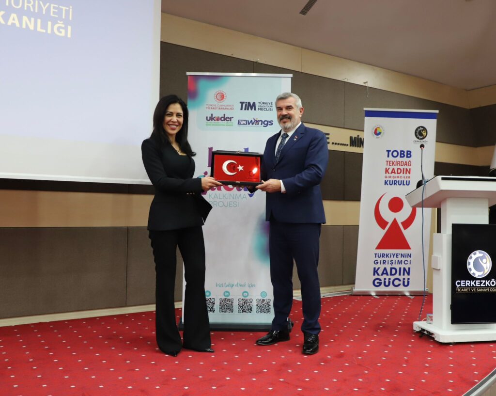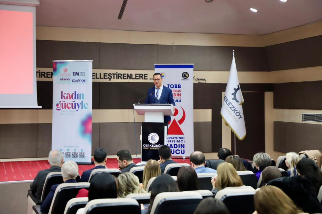 Kadınların ekonomik hayatta ve dış ticarette daha güçlü yer almasını desteklemek amacıyla Ticaret Bakanlığı, TİM ve UKODER’in hayata geçirdiği “Kadın Gücüyle Kalkınma Projesi’nin ilk eğitim programına Çerkezköy TSO ev sahipliği yaptı.