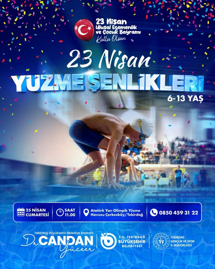 Şölenin futbol ayağı ise 23 Nisan günü saat 13.00’te Muratlı Spor Kompleksi’nde start alacak. 9-14 yaş arası çocukların 8’erli takımlar halinde sahaya çıkacağı turnuvada 12 kişilik kadrolar kıyasıya mücadele edecek. Futbol için son başvuru tarihi 18 Nisan olarak belirlenirken, yüzme tutkunları Çerkezköy Atatürk Yarı Olimpik Yüzme Havuzu’nda bir araya gelecek. 7-8 yaştan başlayarak 13 yaş üzerine kadar farklı kategorilerde düzenlenen yüzme yarışları, saat 11.00’deki ve 15.00’teki seanslarıyla gerçekleştirilecek. Bayrak yarışlarının heyecanıyla renklenen havuzda sporcular, ferdi ve takım bazında puan toplamak için kulaç atacak. Süleymanpaşa’da bulunan Namık Kemal Stadı’nda gerçekleştirilecek voleybol branşında ise 9-12 yaş grubundaki çocuklar için 23 Nisan kapsamında eğlence odaklı bir voleybol şenliği düzenlenecek. 20 Nisan son başvuru tarihli bu özel etkinlikte çocuklar, bayramın tadını file önünde çıkaracak.