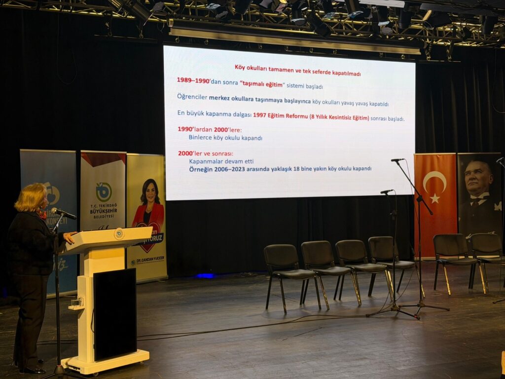 Program kapsamında Prof. Dr. Neşe Atik “Köy Enstitüleri’nden Günümüze Eğitim” başlıklı bir sunum gerçekleştirdi. Atik, sunumunda Köy Enstitüleri’nin eğitim alanında sağladığı kazanımları, tarihsel gelişim sürecini ve bu modelin günümüz eğitim sistemine nasıl uyarlanabileceğine dair önemli değerlendirmelerde bulundu. Etkinlikler, “Dostlar Korosu İlk Koristleri Konseri” ile devam etti. Konser, katılımcılara müzik dolu anlar yaşattı. Programa, CHP Tekirdağ Milletvekili ve TBMM Kâtip Üyesi Nurten Yontar, Büyükşehir Belediyesi Kültür, Sanat ve Sosyal İşler Dairesi Başkanı Nilüfer Ayça Albayraktar, Tekirdağ Kent Konseyi Başkanı Berrin Başol Menekşe, sivil toplum kuruluşları ve çok sayıda vatandaş katıldı. Cumhuriyet’in eğitim mirasının ve Köy Enstitüleri’nin tarihsel öneminin vurgulandığı etkinlik, yoğun katılımla gerçekleşti.