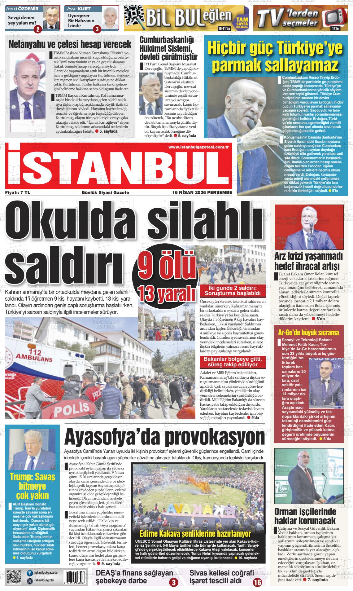 İstanbul Yerel Gazeteleri 16 Nisan 2026, Perşembe Günü Manşeti
