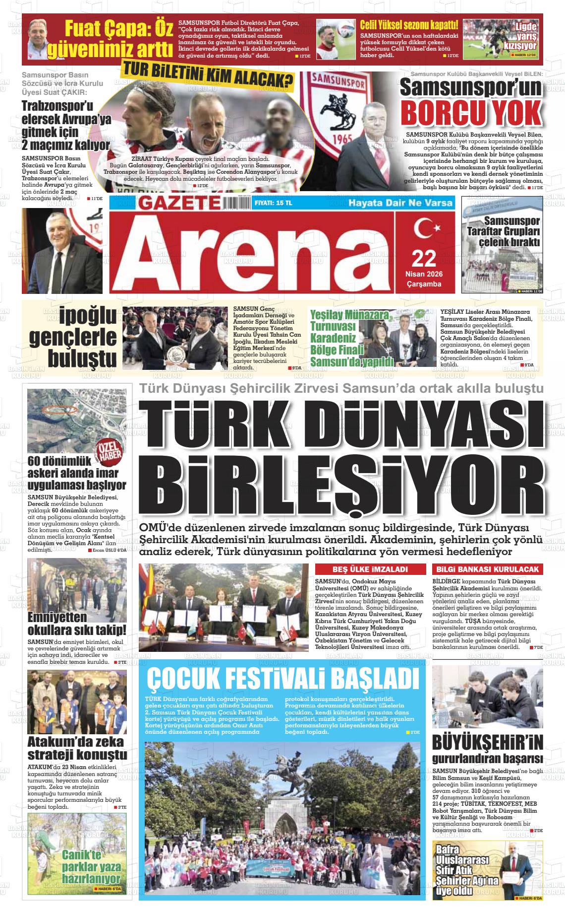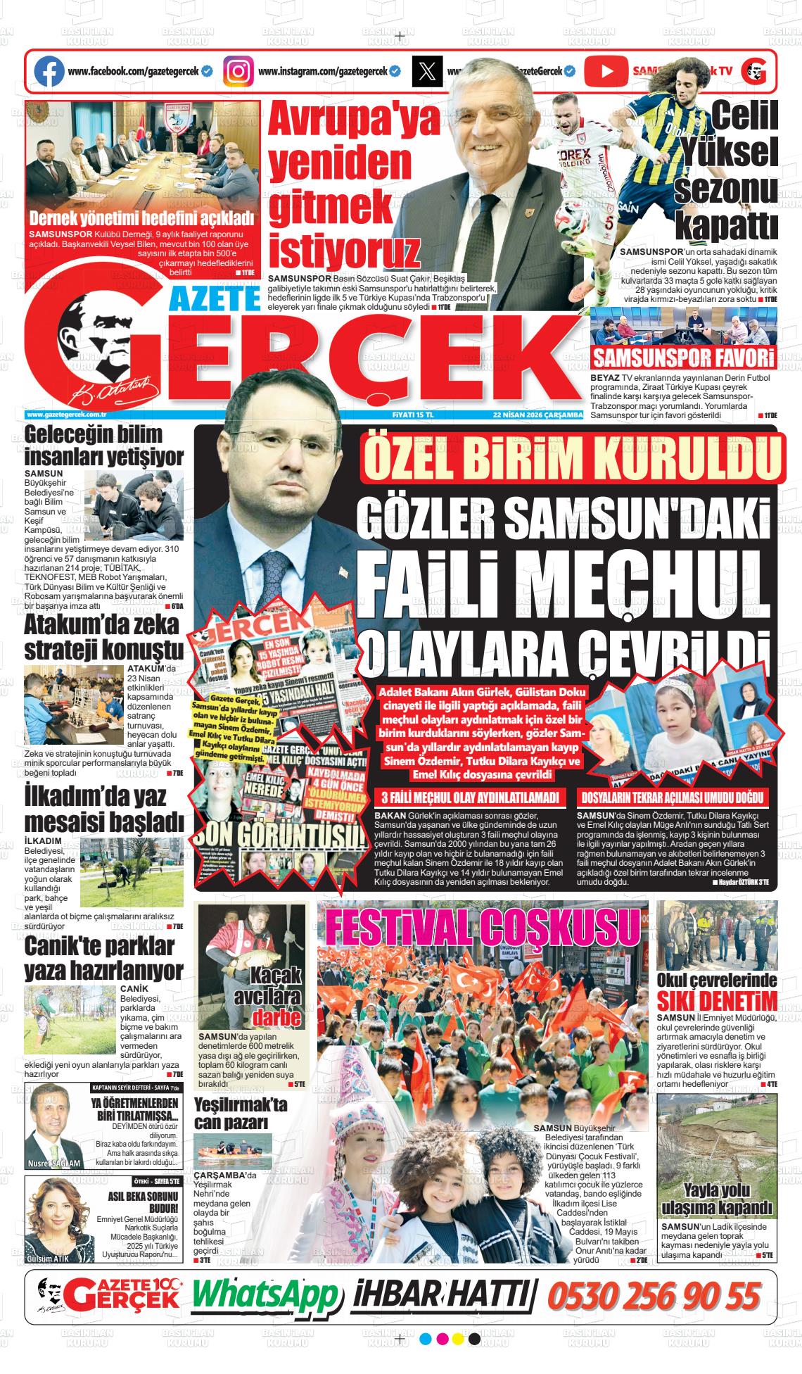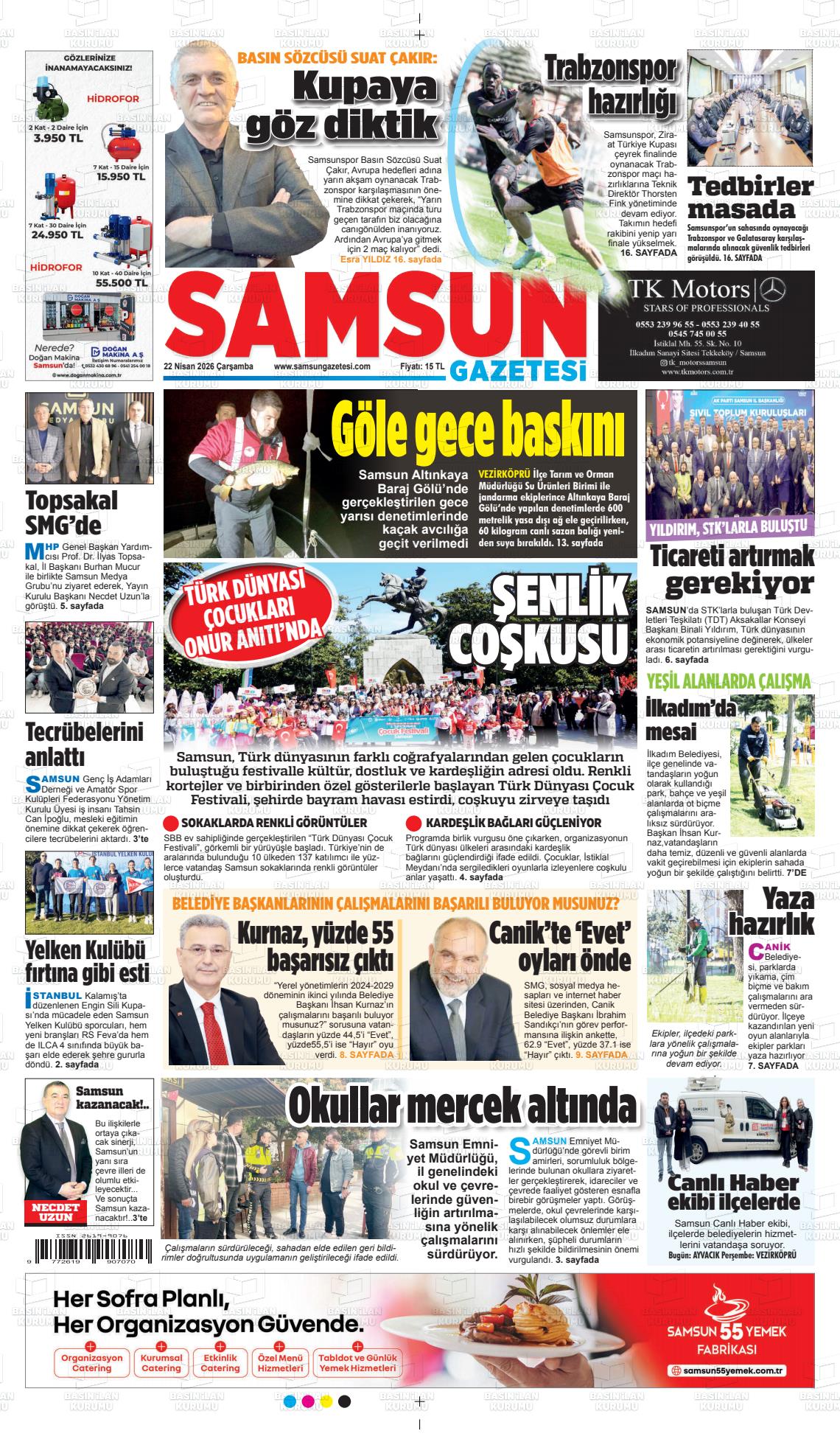 Samsun Yerel Gazeteleri 22 Nisan 2026, Çarşamba Günü Manşeti