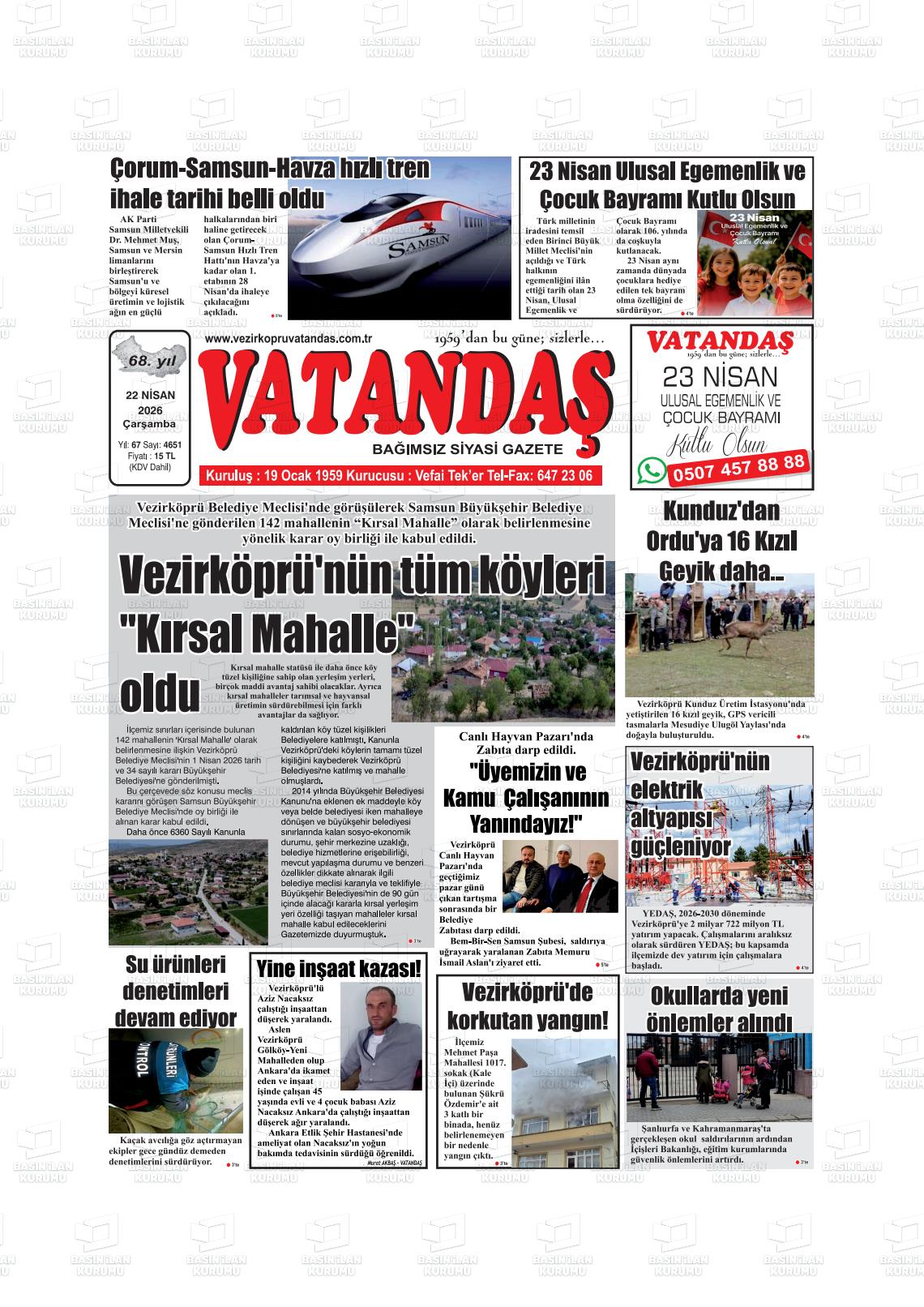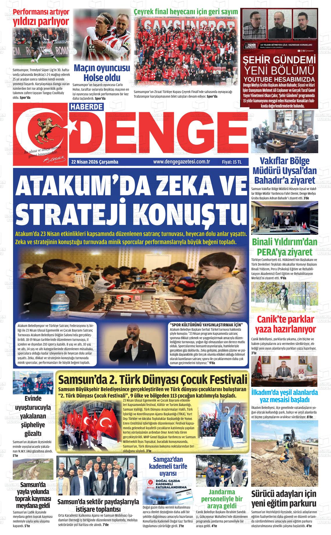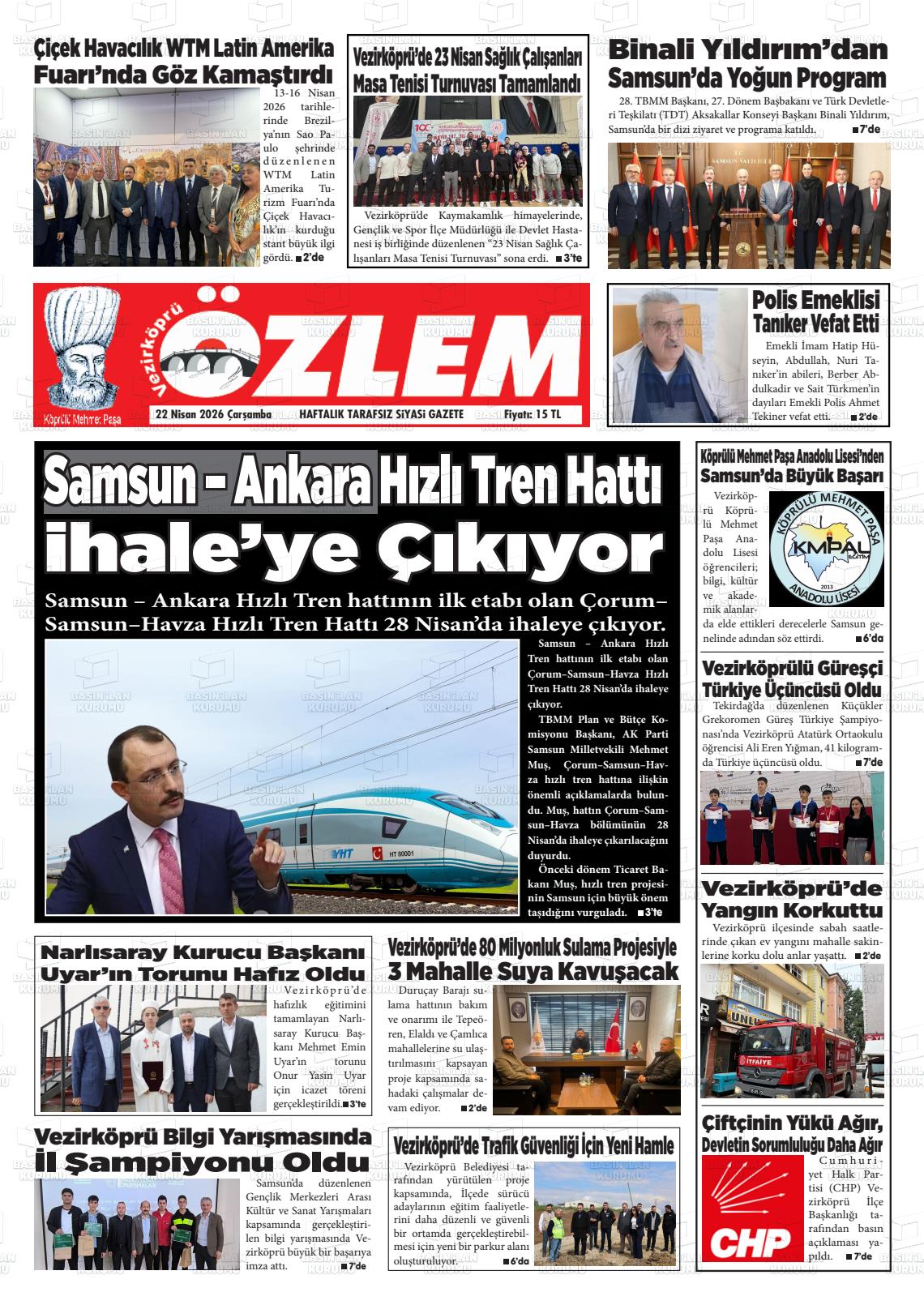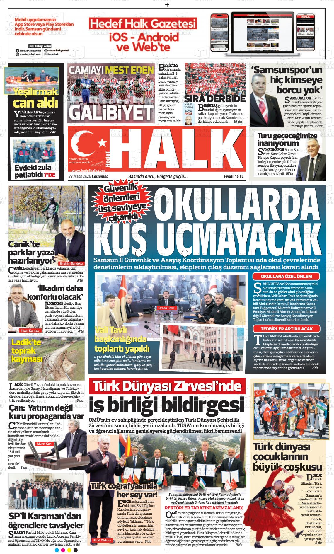 Samsun Yerel Gazeteleri 22 Nisan 2026, Çarşamba Günü Manşeti